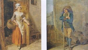 Deux Musiciens Ambulants Devant Une Chaumiere