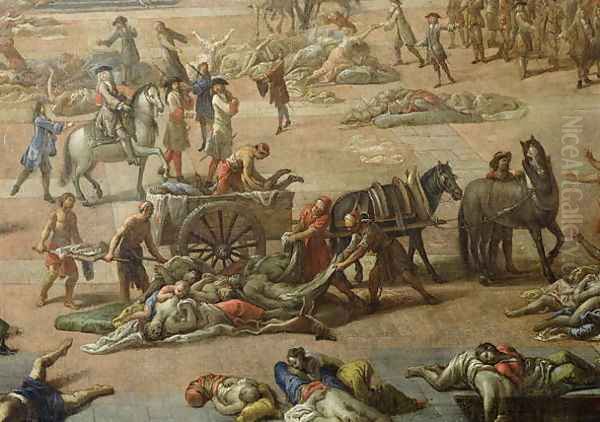 View of the Town Hall, Marseilles, during the Plague of 1720, detail of the carts laden with the dead