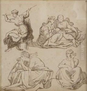 Study Of A Left Thigh And Knee, With A Separate Study Of A Right Knee Seen In Profile, And A Right Foot
