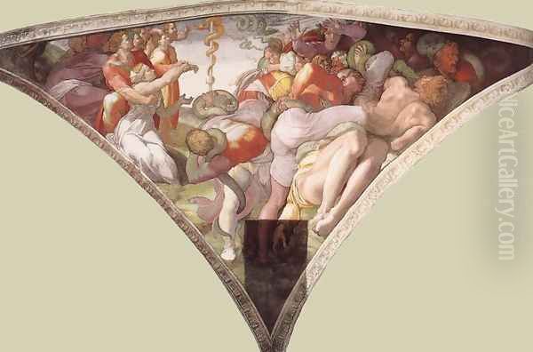 Bring the timeless beauty of Michelangelo Buonarroti's Pendentive - The Brazen Serpent into your home with a handmade oil painting reproduction. Carefully recreated on canvas by skilled artists using traditional techniques, this piece captures the delicate brushwork, subtle light, and vibrant color of the original masterpiece. With museum-level quality and rich texture, it brings elegance and artistic depth to any space. Enjoy free shipping and make this masterpiece a part of your personal collection.
