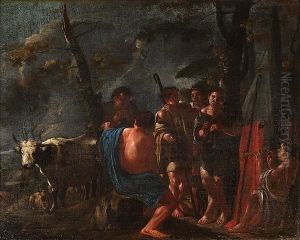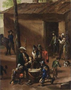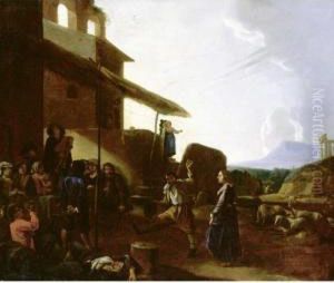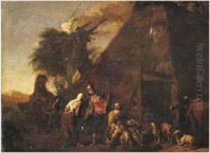 A Painter At Work In A Grotto With Shepherds And Travellers Nearby