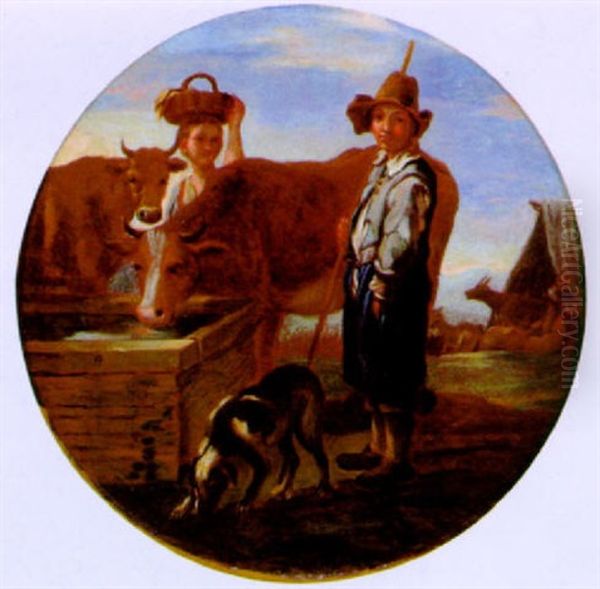 Hirtin Und Hirt In Einer Landschaft