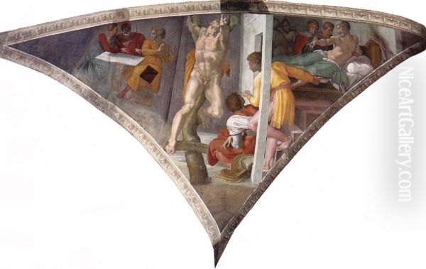 Bring the timeless beauty of Michelangelo Buonarroti's Punishment of Haman (Book of Esther 7:1-10) into your home with a handmade oil painting reproduction. Carefully recreated on canvas by skilled artists using traditional techniques, this piece captures the delicate brushwork, subtle light, and vibrant color of the original masterpiece. With museum-level quality and rich texture, it brings elegance and artistic depth to any space. Enjoy free shipping and make this masterpiece a part of your personal collection.