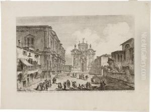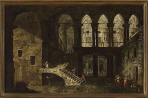 A Capriccio With Peasants Resting Before Buildings, The Venetian Lagoon Beyond (+ A Capriccio Of The Venetian Lagoon With Peasants Conversing And Resting On A Shore; Pair)