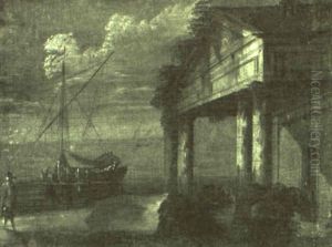 A Capriccio Of The Venetian Lagoon With Travellers Making Their Way To An Inn, Sailing Ships Beyond