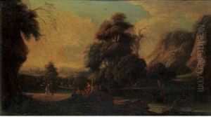 Tre Viandanti In Sosta Presso Un Torrente; E Viandanti In Unpaesaggio Boschivo