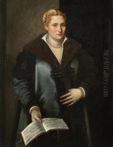 Portrait Of A Diva, Said To Be Artemisia Roberti, Three Quarter Length, Wearing A Fur-lined Coat, Pearls, And Holding A Musical Score