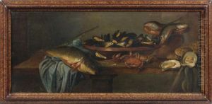 Nature Morte Aux Crustaces, Plat, Perroquet Sur Un Entablement