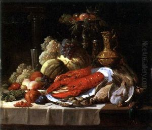 Still Life With Game Birds, A Plate Of Oysters, And Grapes All Resting On A Draped Table