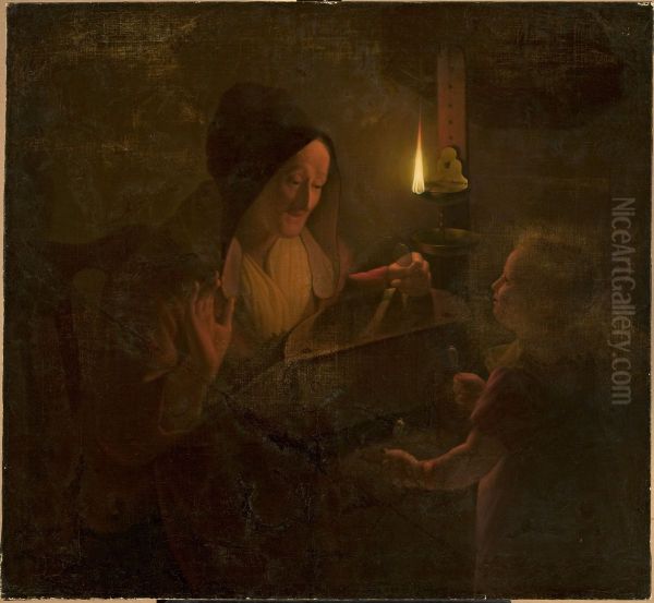 Bring the timeless beauty of Michiel Versteegh's Figural scene by candlelight into your home with a handmade oil painting reproduction. Carefully recreated on canvas by skilled artists using traditional techniques, this piece captures the delicate brushwork, subtle light, and vibrant color of the original masterpiece. With museum-level quality and rich texture, it brings elegance and artistic depth to any space. Enjoy free shipping and make this masterpiece a part of your personal collection.