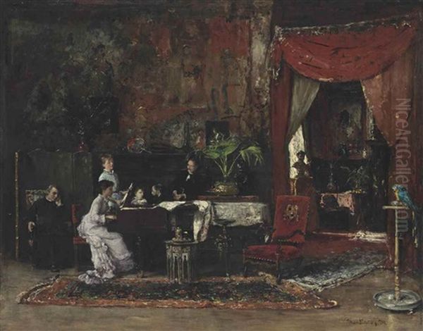 Bring the timeless beauty of Mihaly Munkacsy's Interieur D"un Salon into your home with a handmade oil painting reproduction. Carefully recreated on canvas by skilled artists using traditional techniques, this piece captures the delicate brushwork, subtle light, and vibrant color of the original masterpiece. With museum-level quality and rich texture, it brings elegance and artistic depth to any space. Enjoy free shipping and make this masterpiece a part of your personal collection.