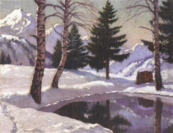 Snow Scene Oil Painting by Mikhail Markianovich Germanshev
