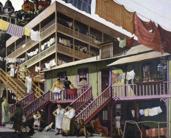 Bring the timeless beauty of Millard Sheets's Tenement Flats into your home with a handmade oil painting reproduction. Carefully recreated on canvas by skilled artists using traditional techniques, this piece captures the delicate brushwork, subtle light, and vibrant color of the original masterpiece. With museum-level quality and rich texture, it brings elegance and artistic depth to any space. Enjoy free shipping and make this masterpiece a part of your personal collection.