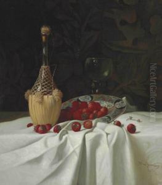 Still Life With Wine Bottle And Strawberries