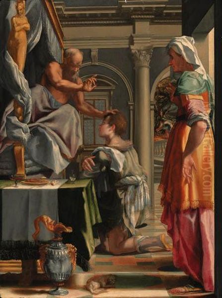Bring the timeless beauty of Mirabello Cavalori (Salincorno)'s Isaac Blessing Jacob into your home with a handmade oil painting reproduction. Carefully recreated on canvas by skilled artists using traditional techniques, this piece captures the delicate brushwork, subtle light, and vibrant color of the original masterpiece. With museum-level quality and rich texture, it brings elegance and artistic depth to any space. Enjoy free shipping and make this masterpiece a part of your personal collection.