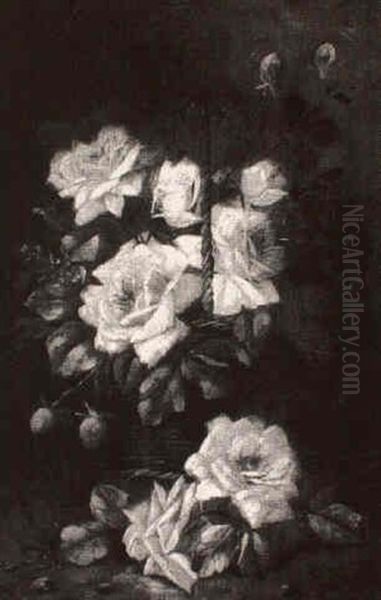 Still Life With Pink, Red And Yellow Roses In A Basket