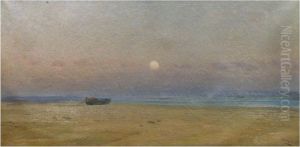 Modesto Urgell y Inglada was a prominent Spanish painter, known for his evocative landscapes and marine scenes that often carried a somber, melancholic tone. Born on March 13, 1839, in Barcelona, Urgell grew up in a time when the Romantic movement was giving way to Realism in art. He began his art studies at the Escuela de la Lonja in Barcelona, where he was influenced by the works of the Barbizon school and the Spanish landscape tradition.