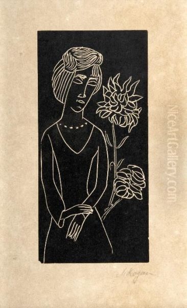 Madchen Mit Chrysantheme Oil Painting by Moissey Kogan