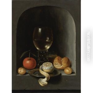Stilleben Med Fat, Skal, Ostron Och Frukter