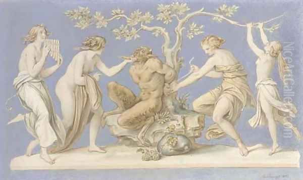 Four nymphs tying Pan to a tree