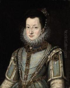 Anna Mikhailovna Khilkova (d. 1862), In Blue Dress With Pleated Bodice, Gauze Sleeves With Gold Border, Blue Belt With Gold Buckle, Gem-set Drop Pendant Pinned At Corsage (by Krafft)