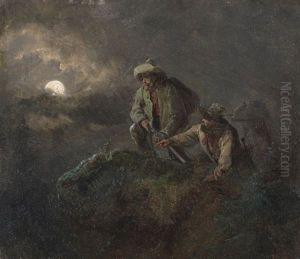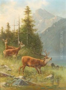 Gebirgslandschaft Mit Gamsen (+ Gamsjagd; Pair)