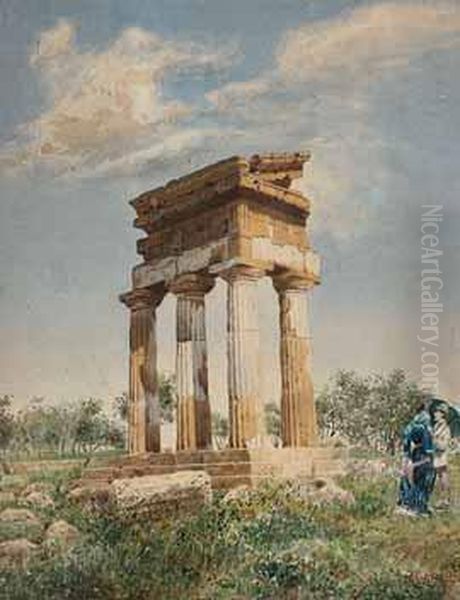 Romische Tempelruine Mit Personenstaffage.