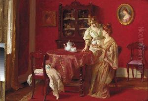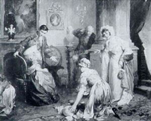 Rokokodame Mit Kammerzofe Und Dienern Im Salon