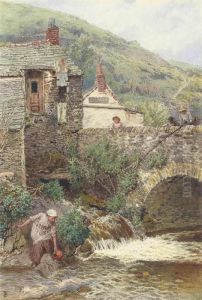 Loading The Hay Barges, With A Young Woman Taking Water From Theriver In The Foreground