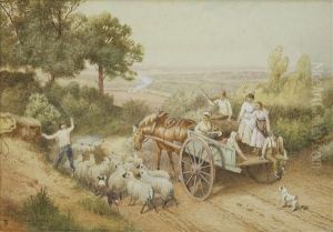 The Hunt Followers, A Busy Summer Scene With Figures And Vegetable Cart