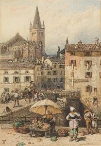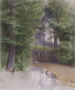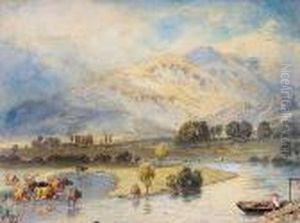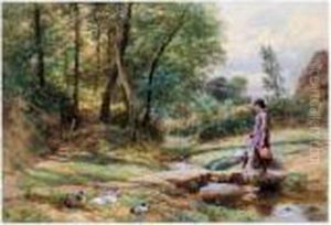 R.w.s. Summer Landscape With Children Beside A Wooden Stile, A Dog And Sheep Watering Beside A Stream, An Extensive Landscape Beyond Signed With The Artist's Monogram, Also Inscribed With The Artist's Name On The Original Frame, Together With Biog
