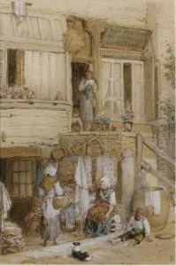 Chair Mender And Other Figures By A Country Cottage