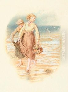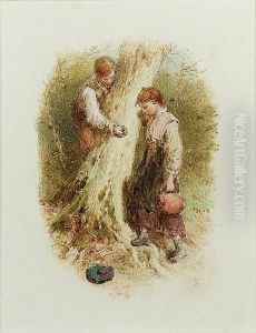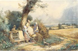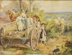 Foster, Young Gleaners, Watercolour, 26 X 40 Cm