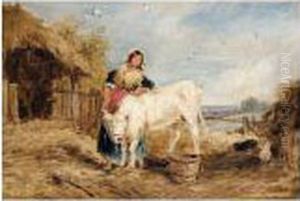 Farm Girl With Calf