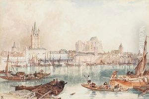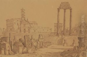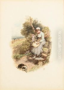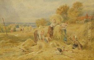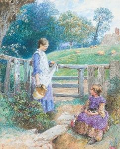 Two Women And A Child In The Garden Of A Thatched Cottage