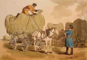 Figures In A Cart With Cattle And Sheep Fording A River