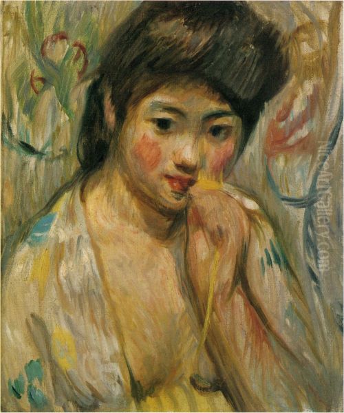 A Girl Oil Painting by Nakamura Tsune