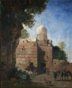 Personnages Assis Dans La Mosque Ibn Tulun, Au Fond La Mosquee Muhamed Ali