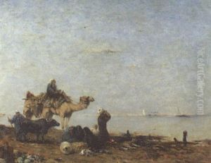 Orientszene. Am Ufer Rastende Manner Und Frauen
