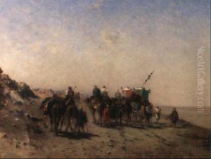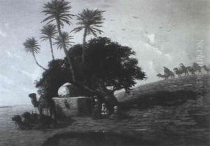 In Einer Oase Hat Sich Eine Karawane Eingefunden