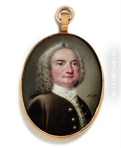 George Gostling Of Whitton Place, Half Length Wearing A White Cravat, Black Jacket And A Powdered Wig, Holding A Document
