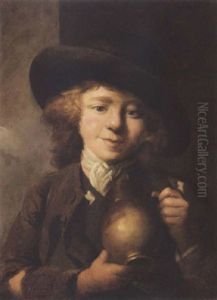 Portrait Of A Boy, Probably One The Artist's Children, Half-length, In A Green Coat And Waistcoat, Holding A Red Folio
