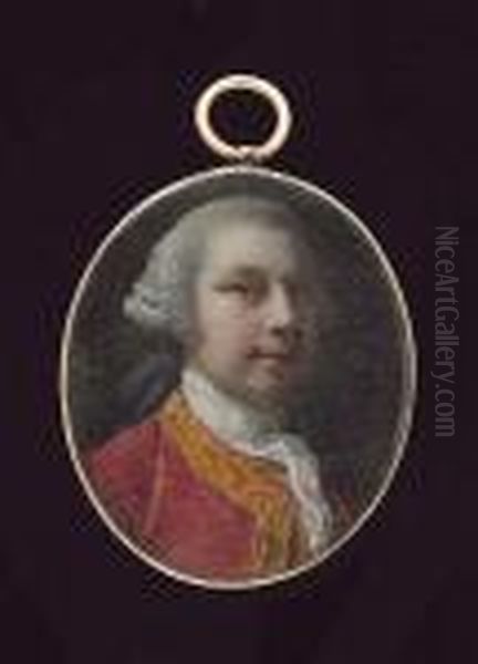 A Self-portrait Of The Artist, Wearing Ochre-trimmed Deep Red Coat, Matching Waistcoat And White Cravat, His Powdered Wig Worn