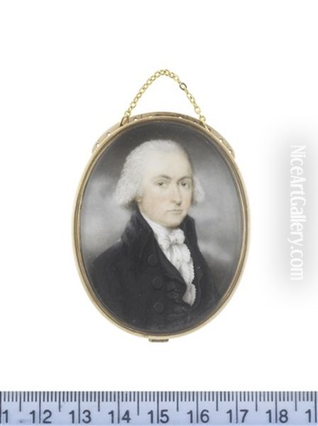 A Gentleman, Wearing Black Coat And Waistcoat, White Frilled Chemise, Stock And Tied Cravat, His Hair Powdered