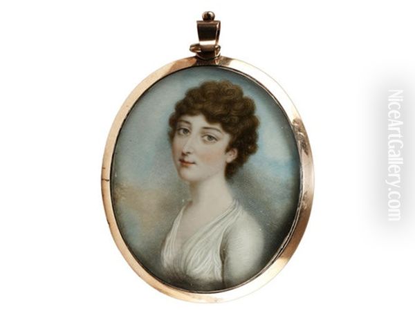A Portrait Miniature Of A Lady, Wearing White Dress, Her Brown Hair Curled And Upswept