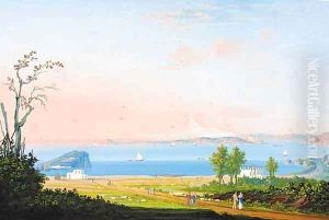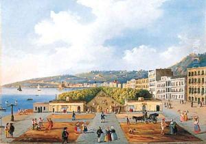 Figures promenading on the waterfront, Naples