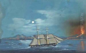 Shipping in the Bay of Naples, with Vesuvius erupting beyond