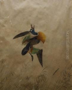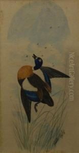 Kookaburras Feeding at a Nest in a Tree, 1892