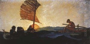 In The Council Lodge: "a Flaring Torch Was Burning In The Place, And Sent Its Red Glare From Face To Face And Figure To Figure, As It Waved In The Currents Of The Air."
