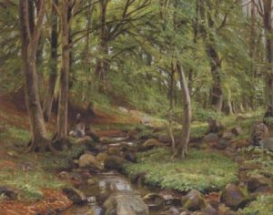 Depiction Of Two Horses Resting Anddrinking Water From A Stream